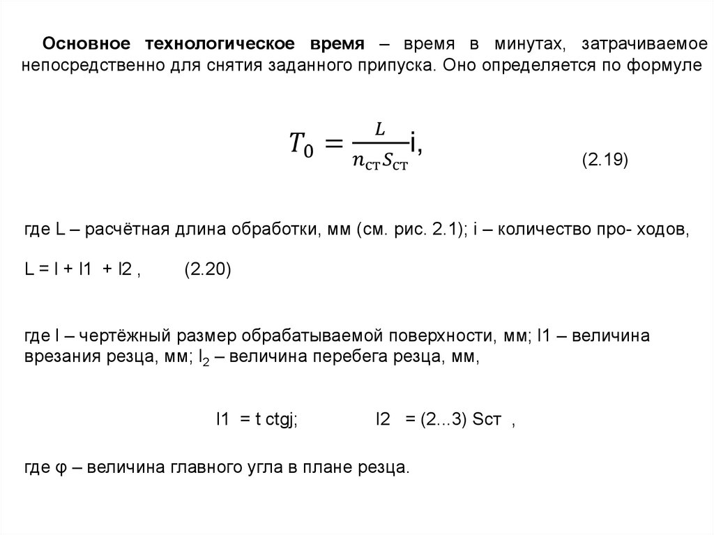 Основное технологическое время – время в минутах, затрачиваемоенепосредственно для снятия заданного припуска. Оно определяется по формуле