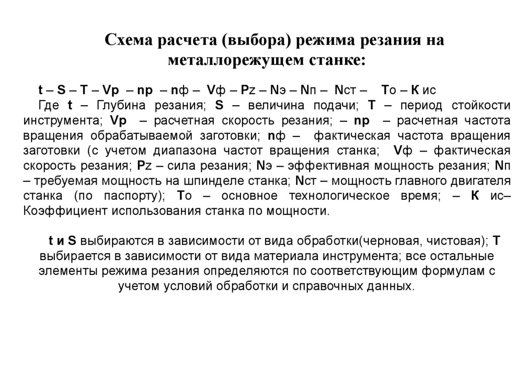 Схема расчета (выбора) режима резания наметаллорежущем станке: