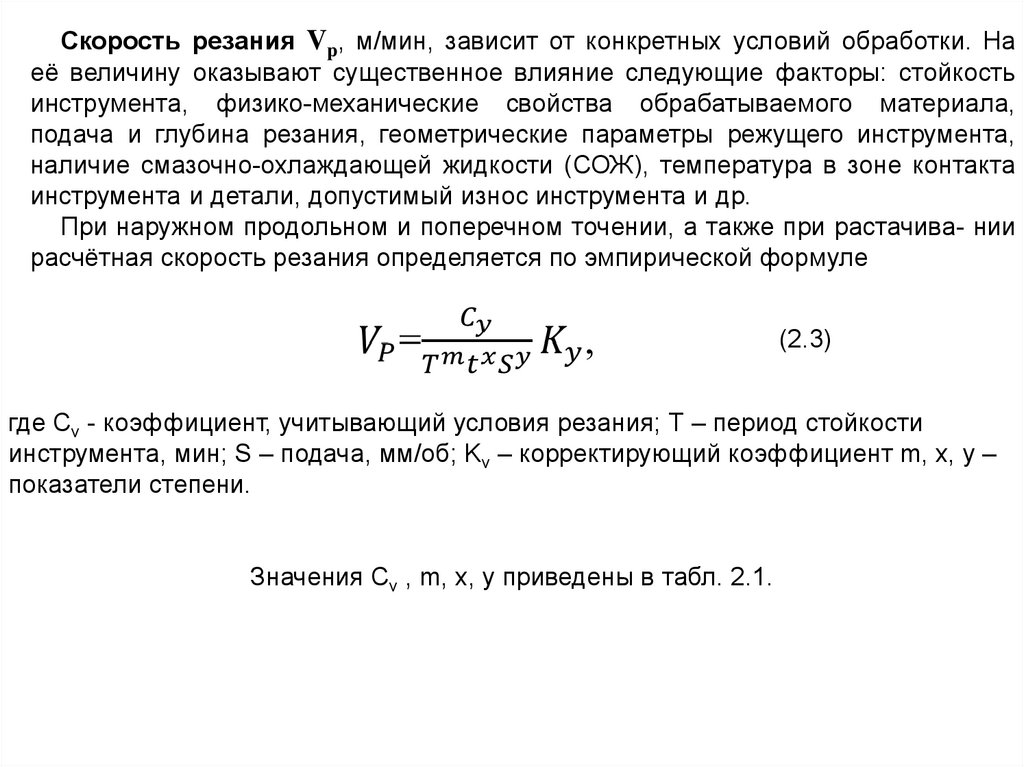 расчётная скорость резания определяется по эмпирической формуле