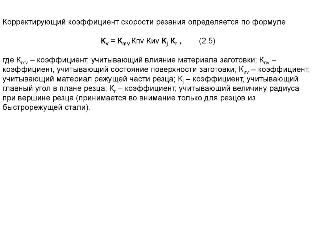 коэффициентов, учитывающих условия резания: