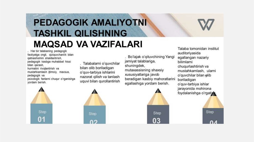 tayorgarliglarini kuzatdim va o‘zim uchun kerakli pedagogik mahorat va bilimlarni shakillantirdim.