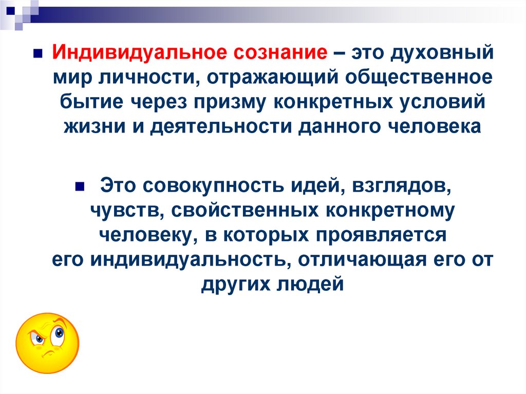 Индивидуальное сознание – это духовныймир личности, отражающий общественное