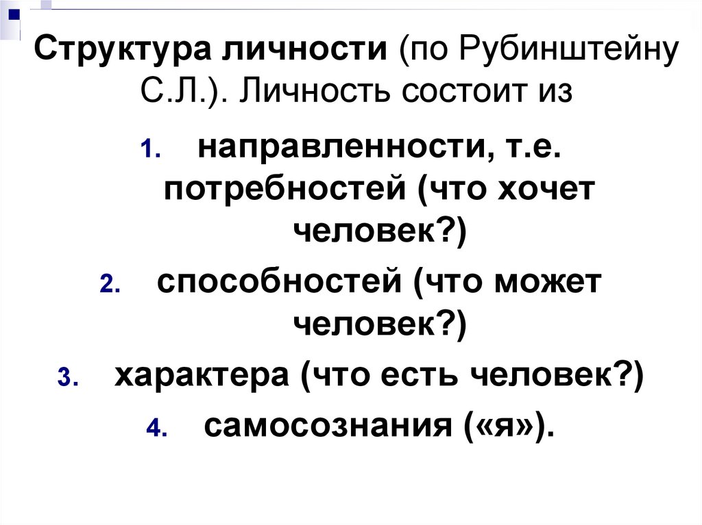 19. Структура личности (по Рубинштейну С.Л.). Личность состоит из