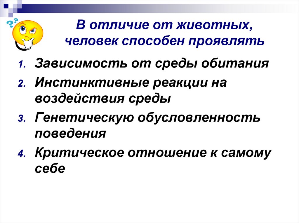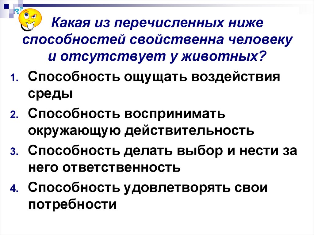 21. Какая из перечисленных ниже способностей свойственна человеку и отсутствует у животных?