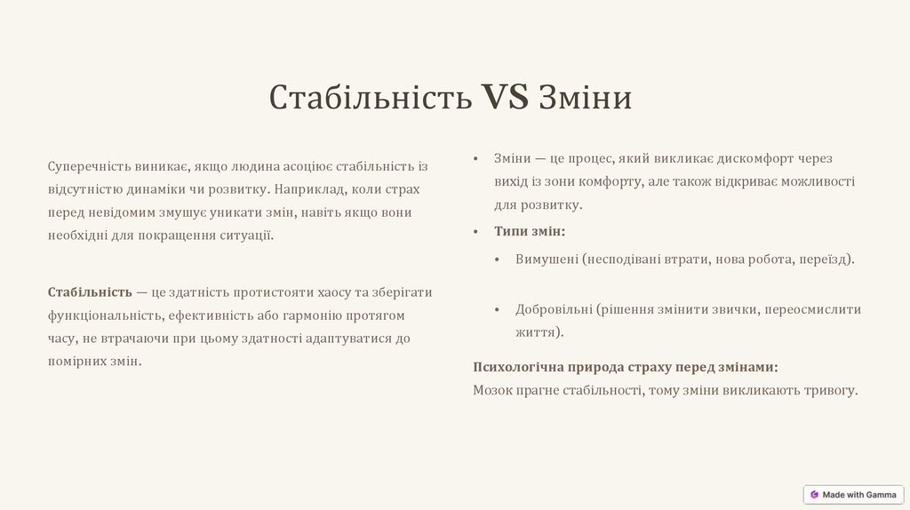 Стабільність VS ЗміниСуперечність виникає, якщо людина асоціює стабільність із