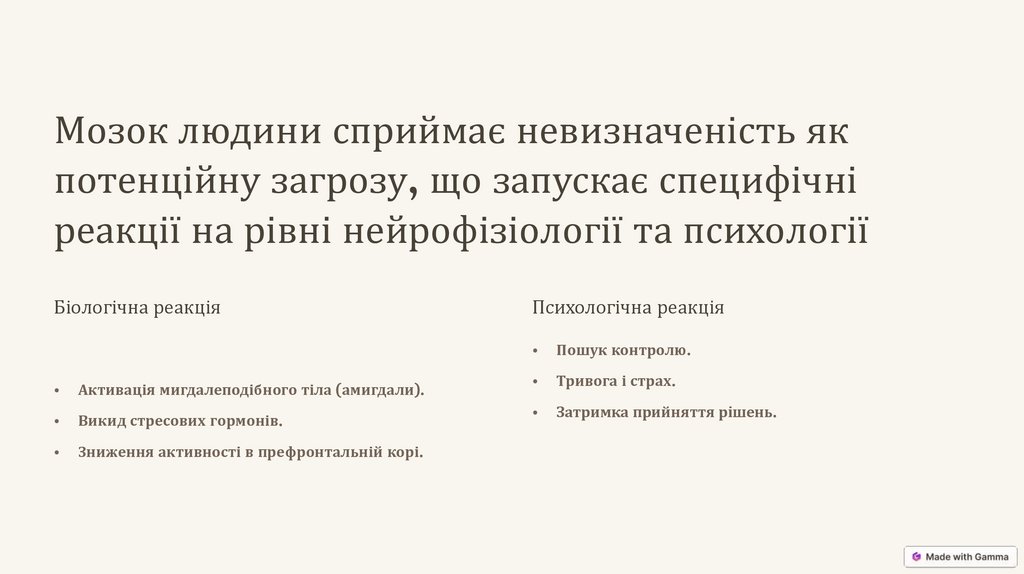Мозок людини сприймає невизначеність якпотенційну загрозу, що запускає специфічні