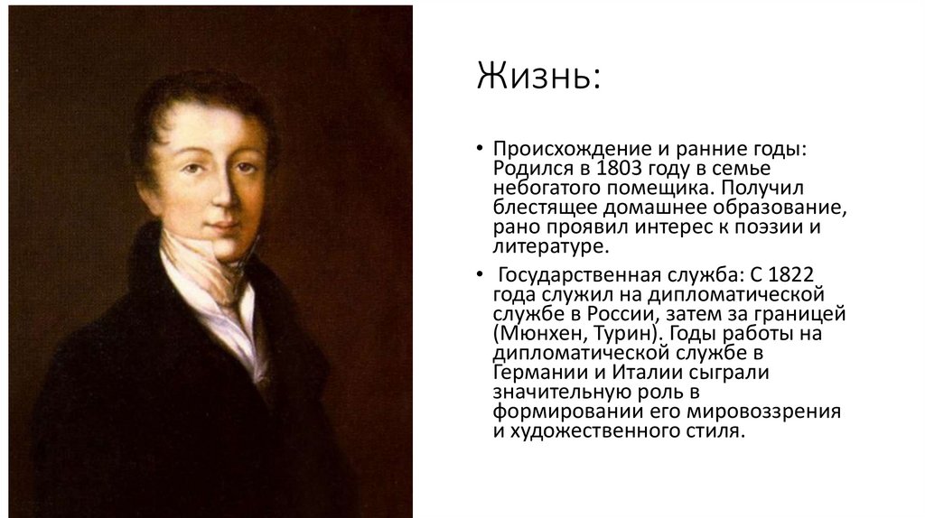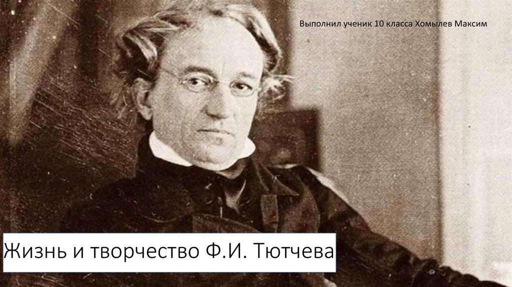Выполнил ученик 10 класса Хомылев МаксимЖизнь и творчество Ф.И. Тютчева