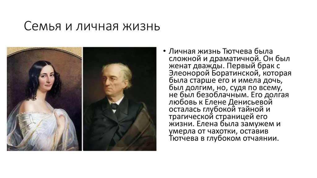 Семья и личная жизнь• Личная жизнь Тютчева была