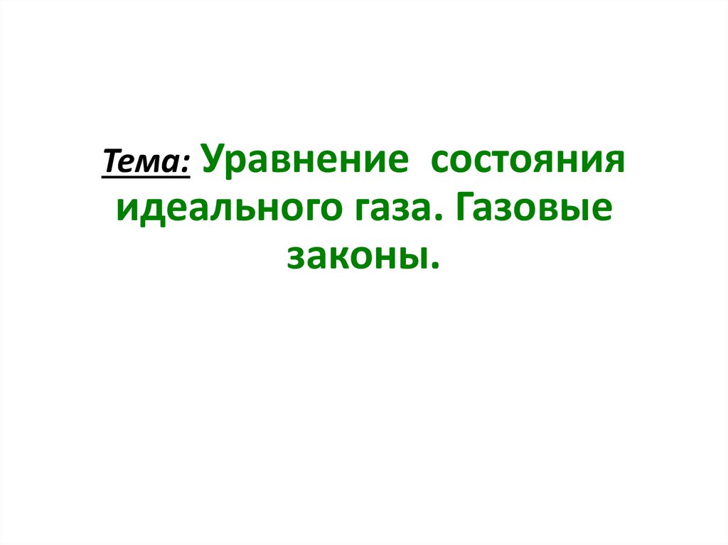 1. Тема: Уравнение состояния идеального газа. Газовые законы.