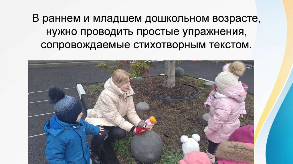 В раннем и младшем дошкольном возрасте,нужно проводить простые упражнения,