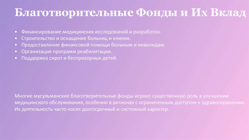 Благотворительные Фонды и Их ВкладФинансирование медицинских исследований и разработок.