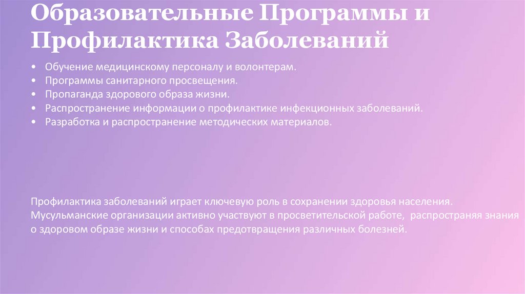Образовательные Программы иПрофилактика Заболеваний
