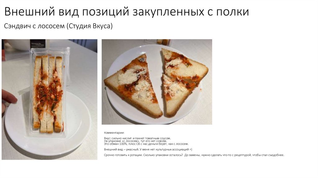 Внешний вид позиций закупленных с полкиСэндвич с лососем (Студия Вкуса)