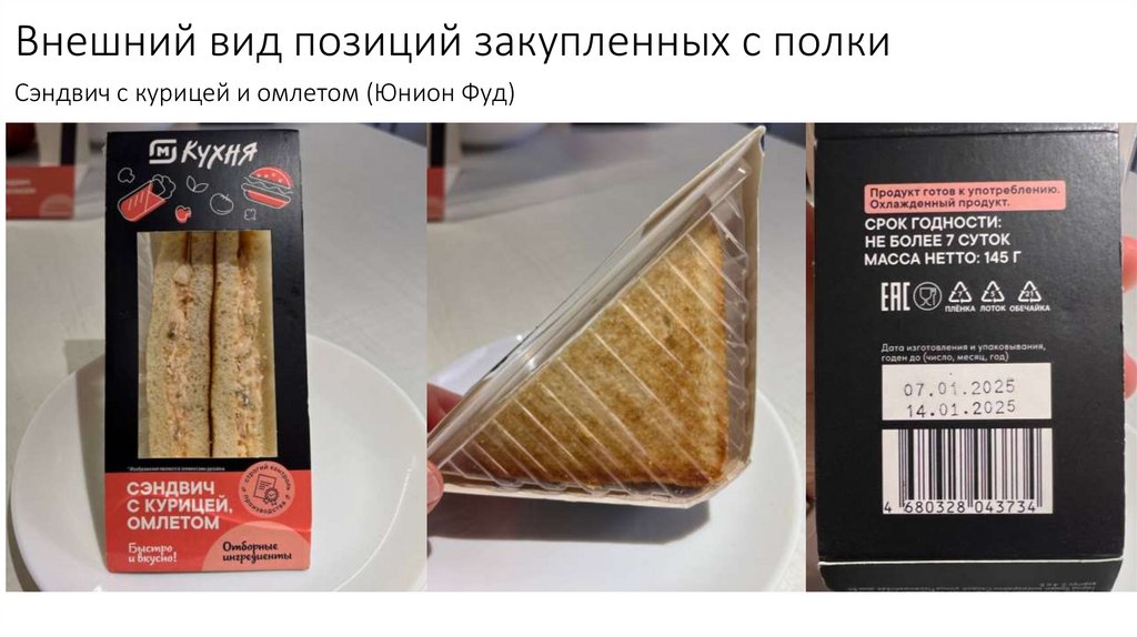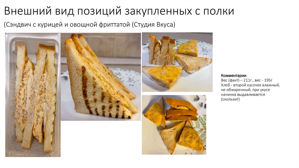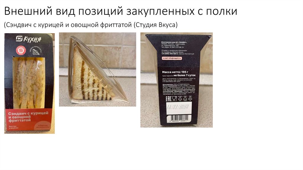 Внешний вид позиций закупленных с полки(Сэндвич с курицей и овощной фриттатой (Студия Вкуса)