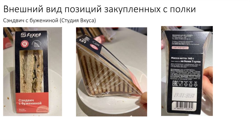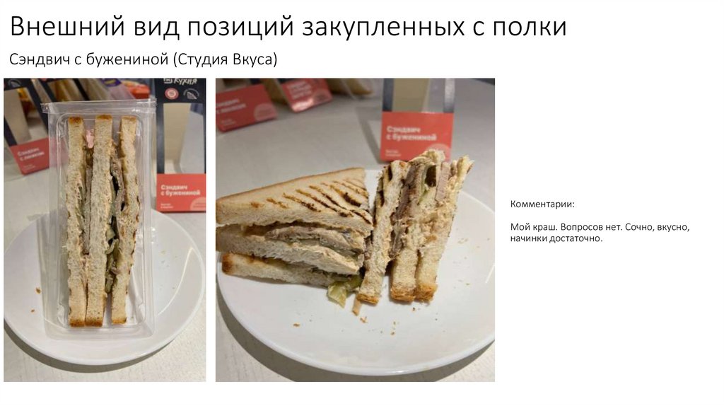 Внешний вид позиций закупленных с полкиСэндвич с бужениной (Студия Вкуса)