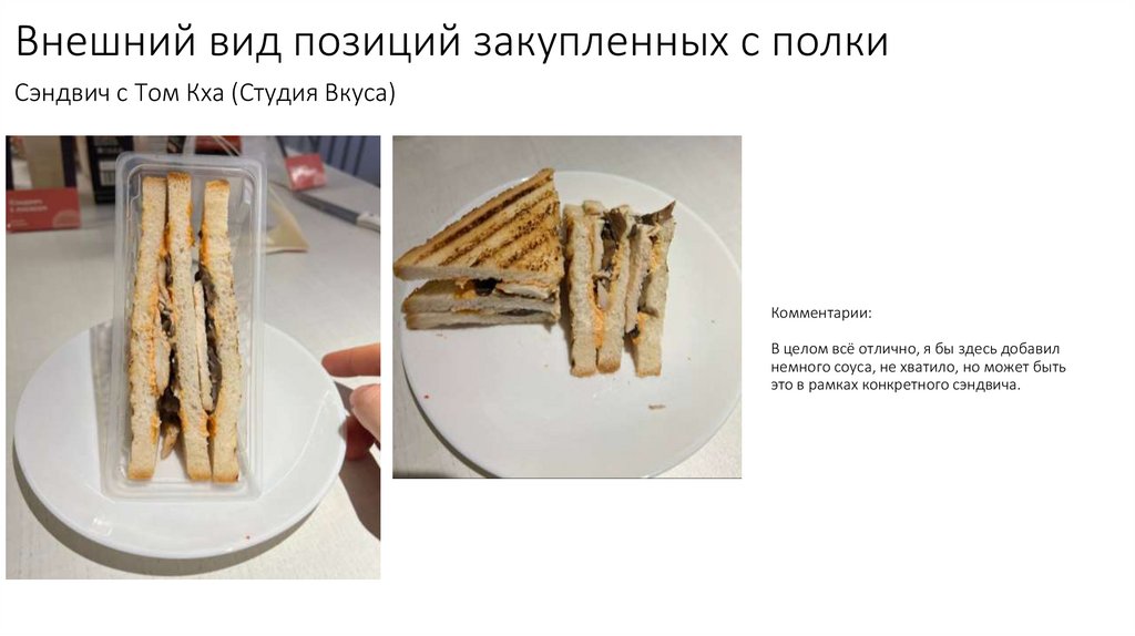 Внешний вид позиций закупленных с полкиСэндвич с Том Кха (Студия Вкуса)