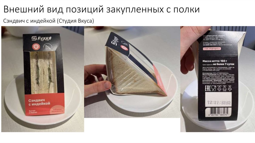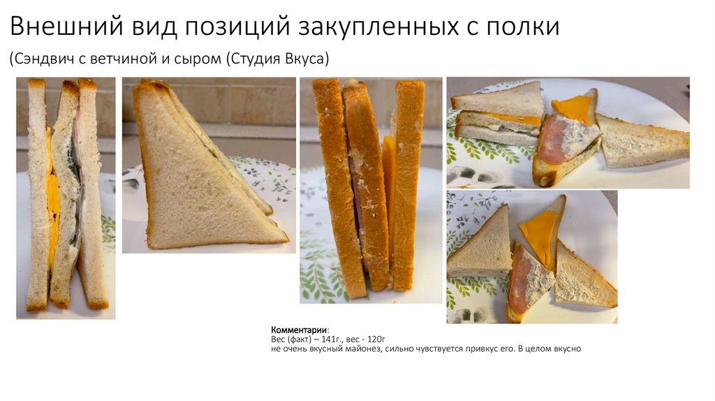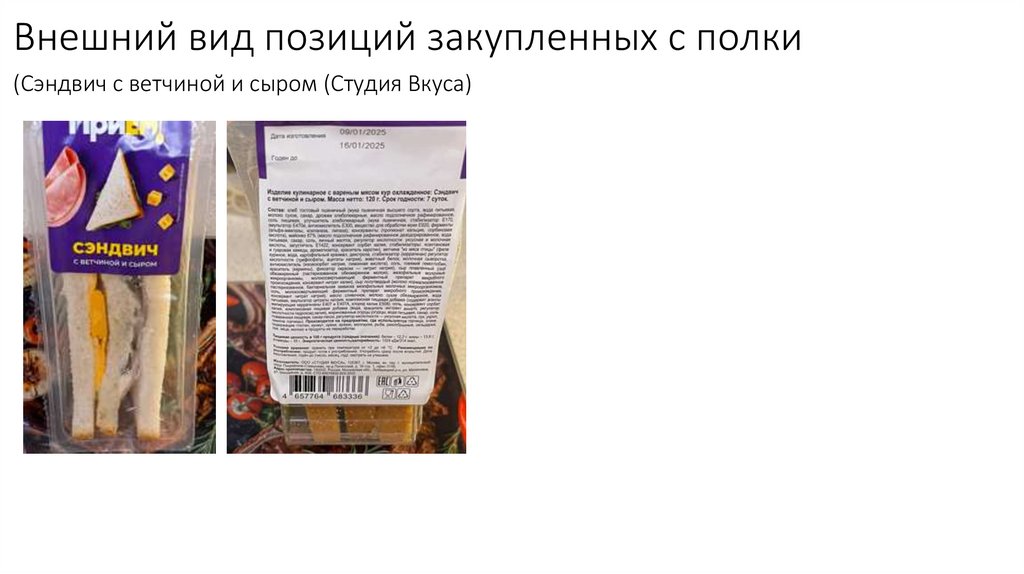 Внешний вид позиций закупленных с полки(Сэндвич с ветчиной и сыром (Студия Вкуса)