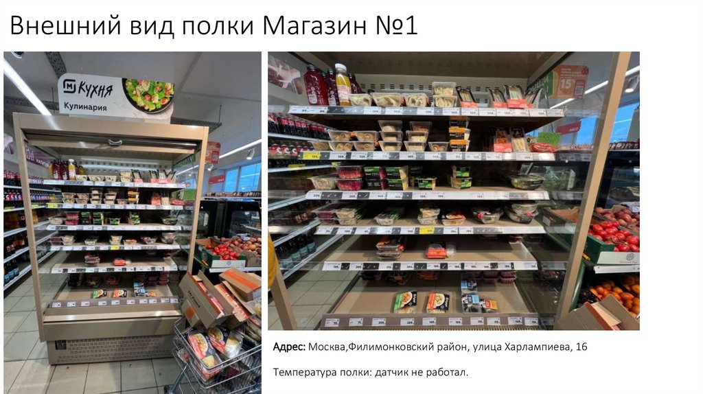 Внешний вид полки Магазин №1Адрес: Москва,Филимонковский район, улица Харлампиева, 16