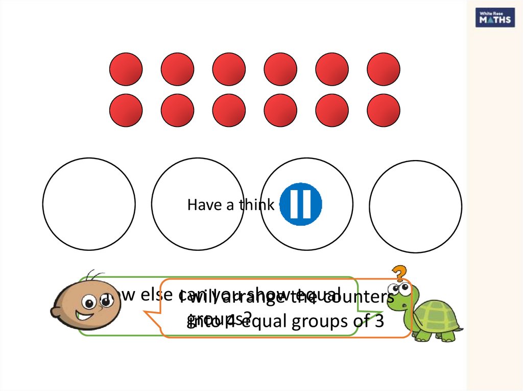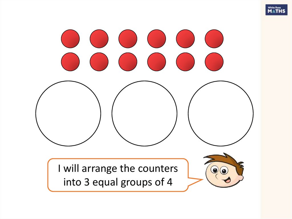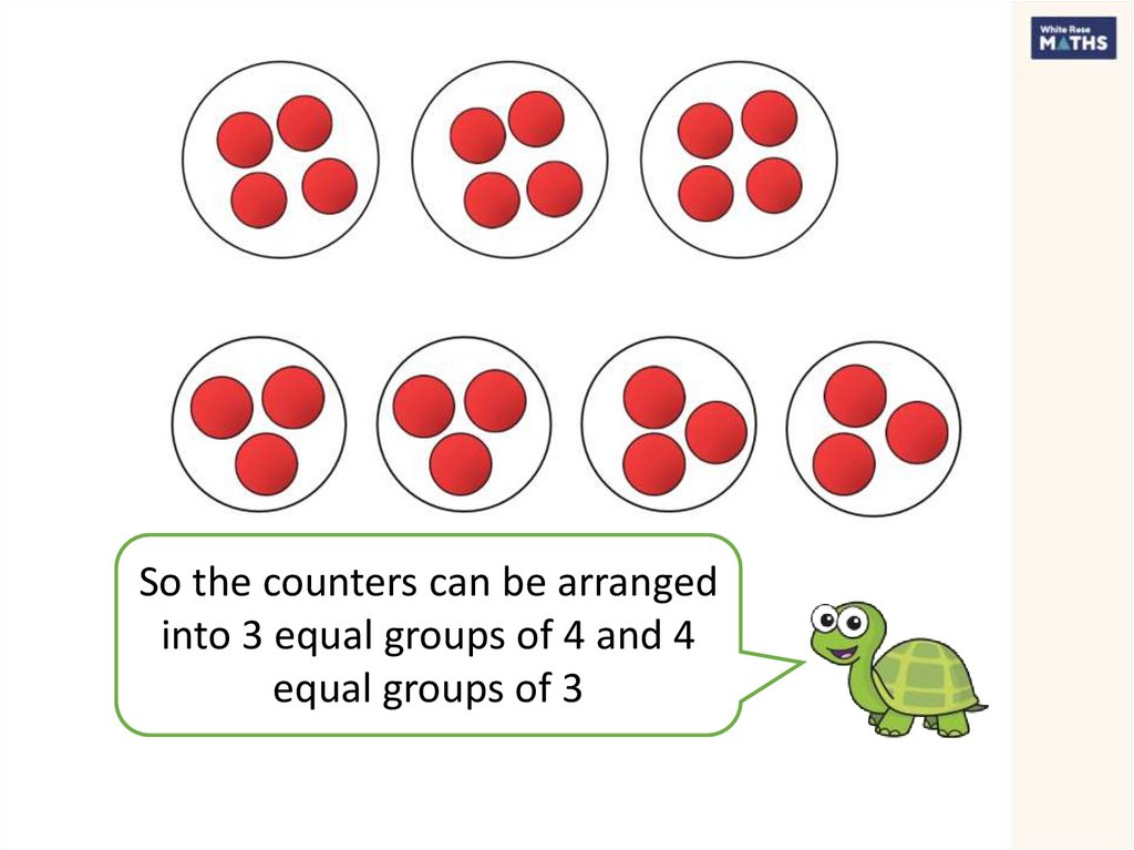 So the counters can be arrangedinto 3 equal groups of 4 and 4