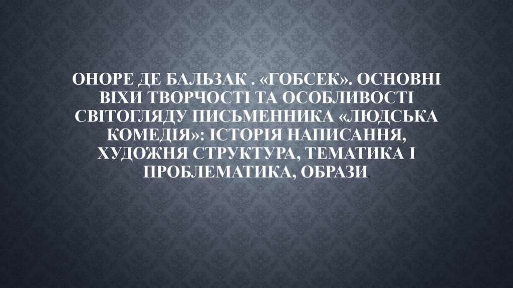 ОНОРЕ ДЕ БАЛЬЗАК . «ГОБСЕК». ОСНОВНІВІХИ ТВОРЧОСТІ ТА ОСОБЛИВОСТІ