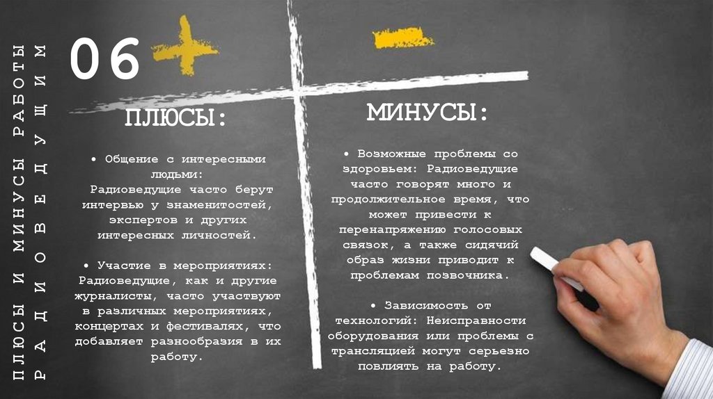 ПЛЮСЫ И МИНУСЫ РАБОТЫР А Д И О В Е Д У Щ И М