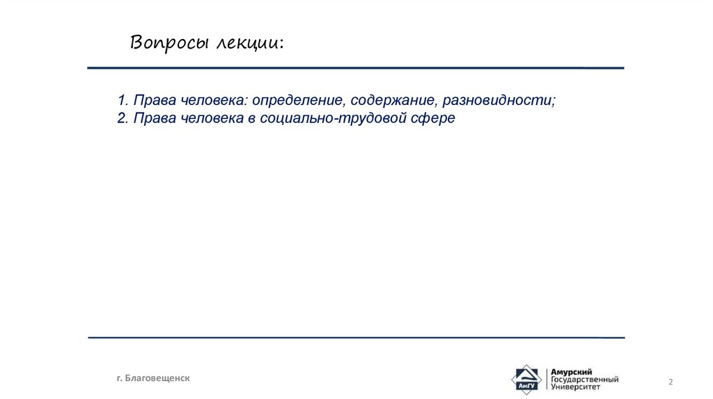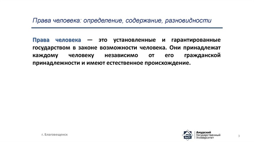 Вопросы лекции:1. Права человека: определение, содержание, разновидности;