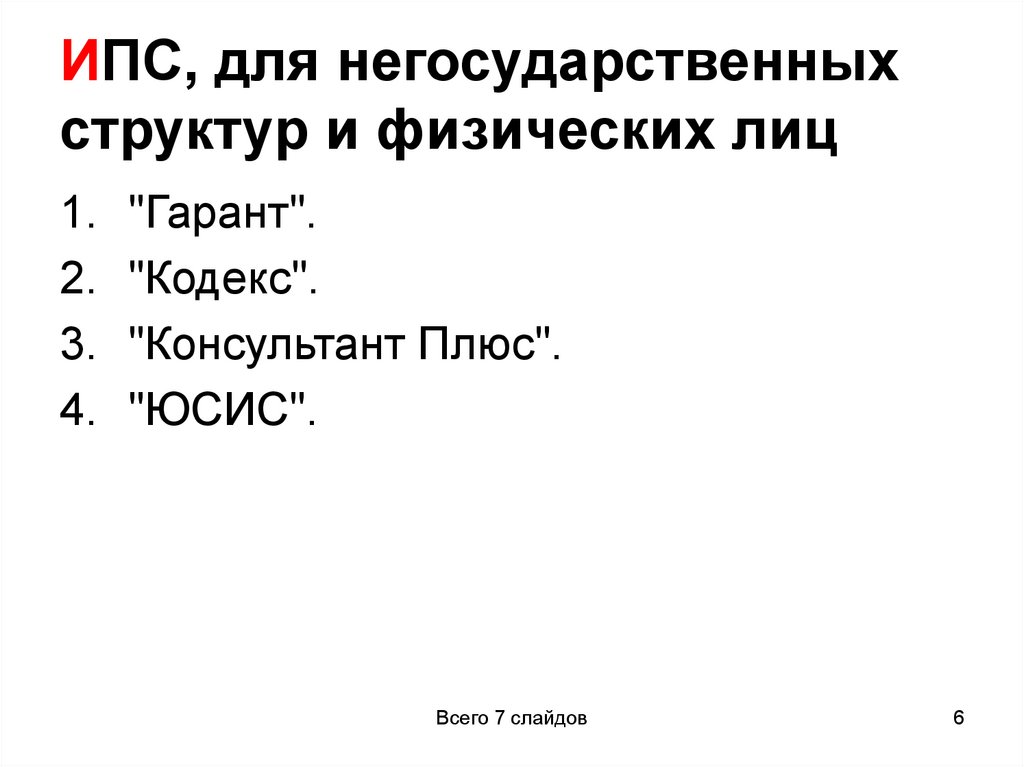 6. ИПС, для негосударственных структур и физических лиц