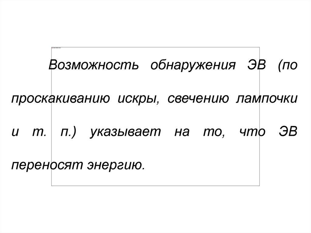 Возможность обнаружения ЭВ (попроскакиванию искры, свечению лампочки