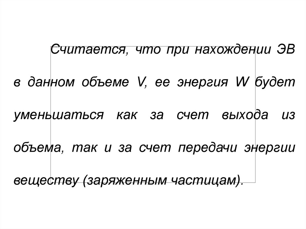 Считается, что при нахождении ЭВв данном объеме V, ее энергия W будет