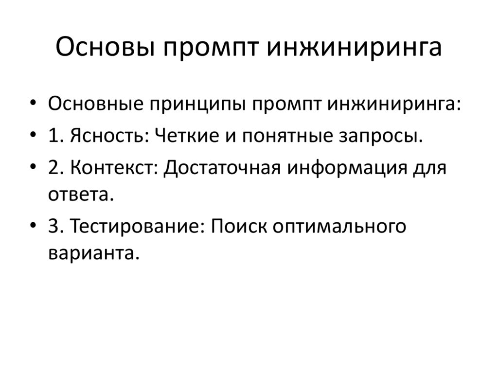 Основы промпт инжиниринга• Основные принципы промпт инжиниринга: