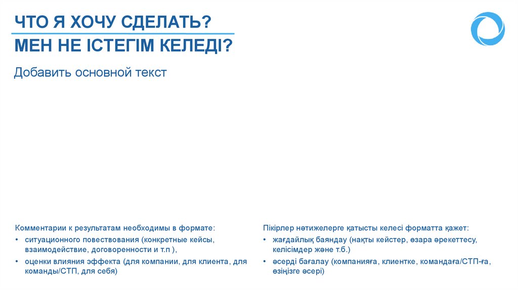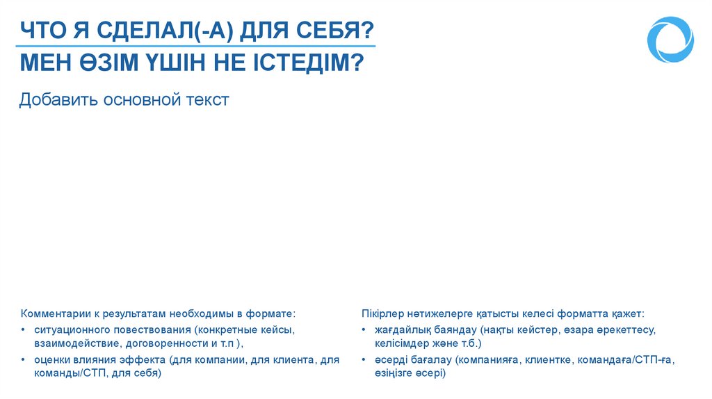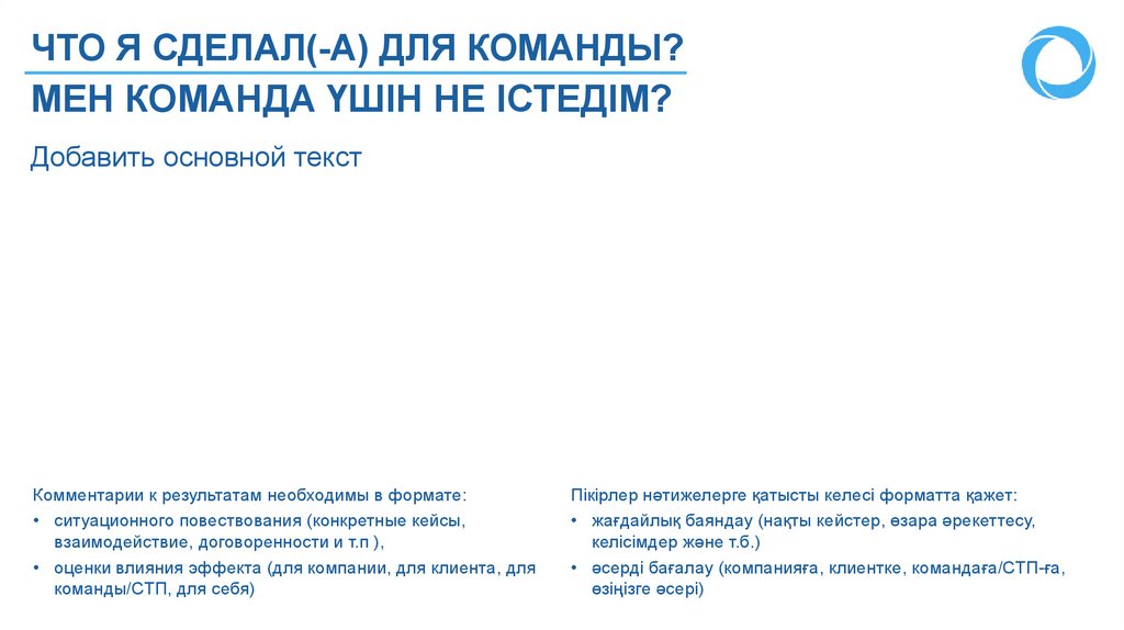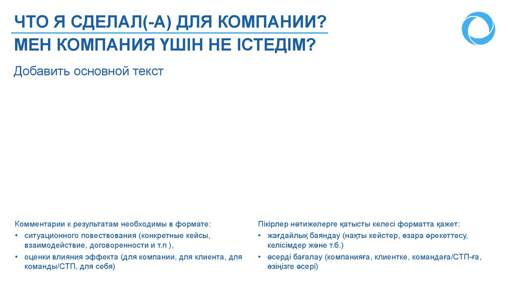 ЧТО Я СДЕЛАЛ(-А) ДЛЯ КОМПАНИИ?МЕН КОМПАНИЯ ҮШІН НЕ ІСТЕДІМ?