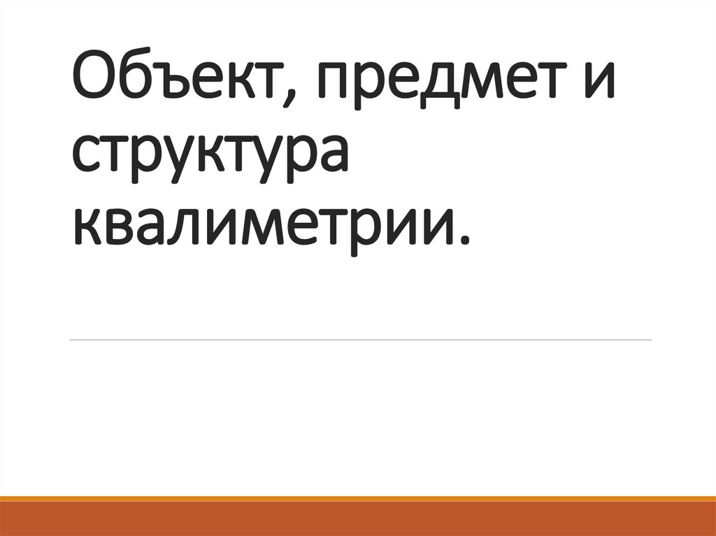 Объект, предмет и структура квалиметрии