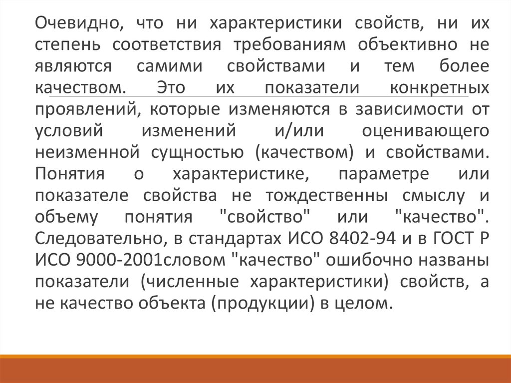 качества, например о качестве продукции, процесса (работы) или