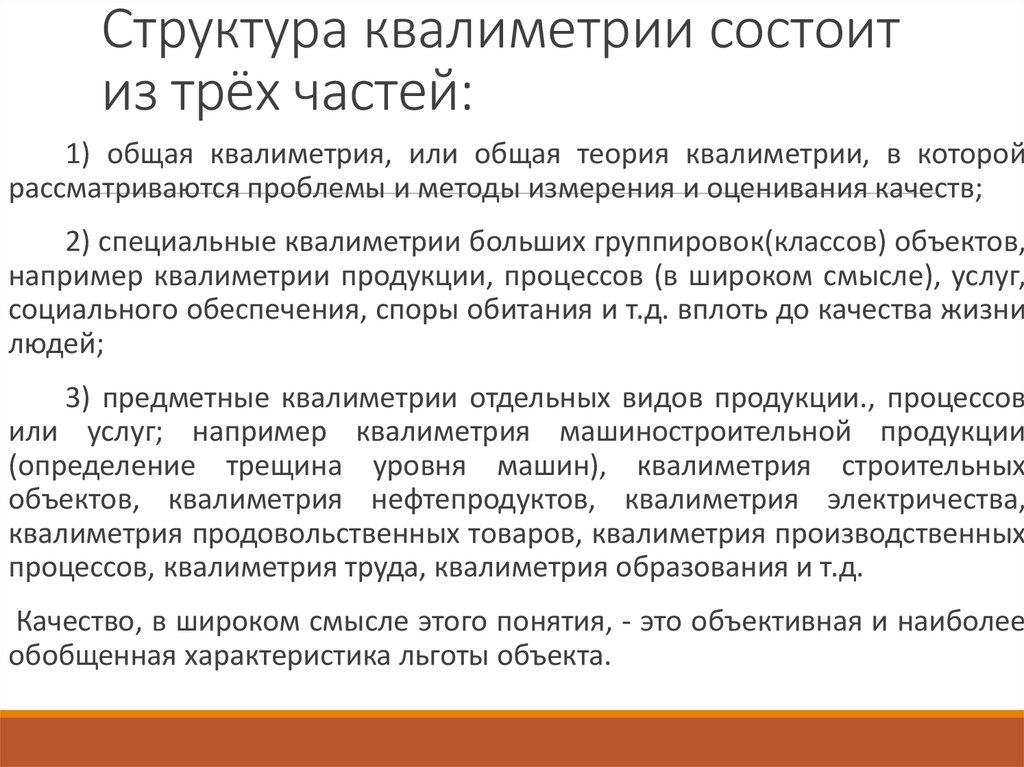 Структура квалиметрии состоитиз трёх частей: