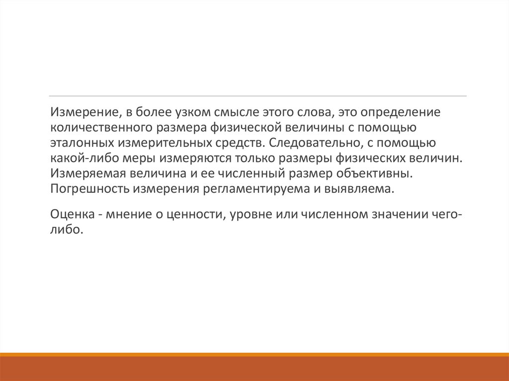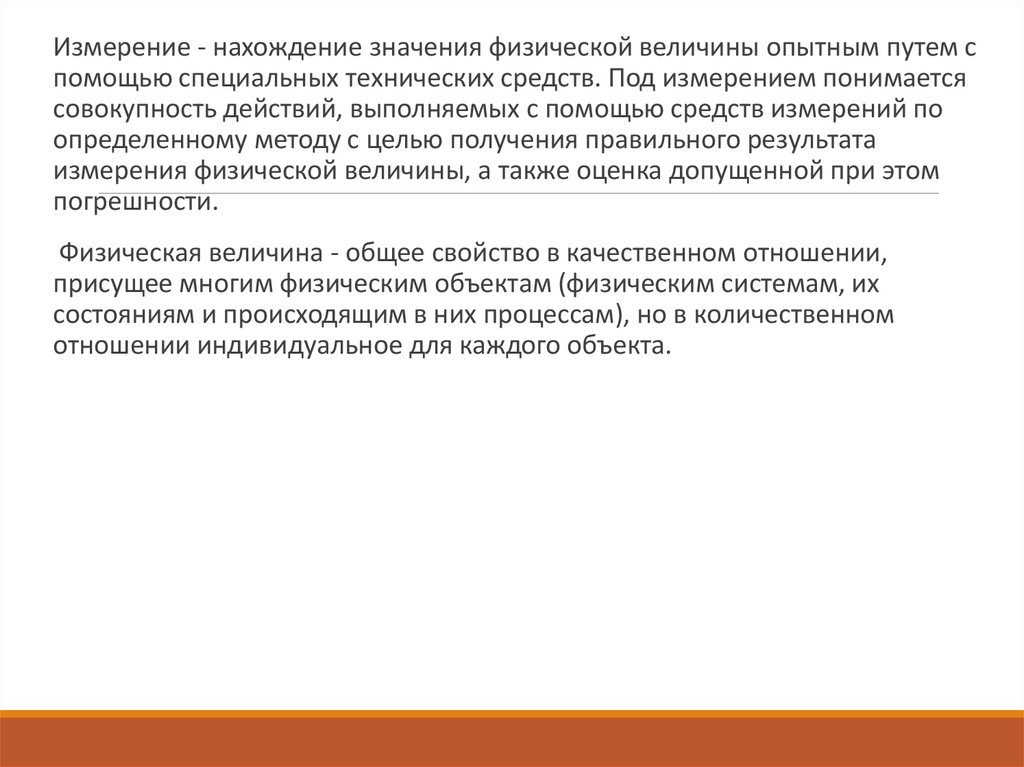 Измерение, в более узком смысле этого слова, это определениеколичественного размера физической величины с помощью
