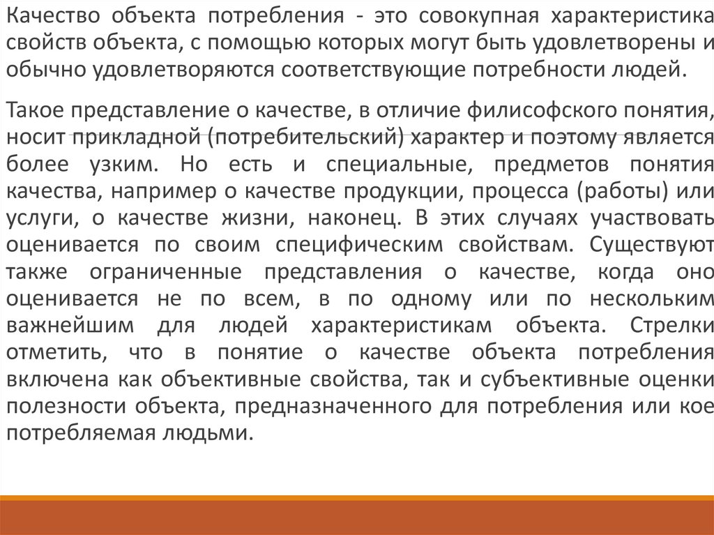 отметить, что в понятие о качестве объекта потребления