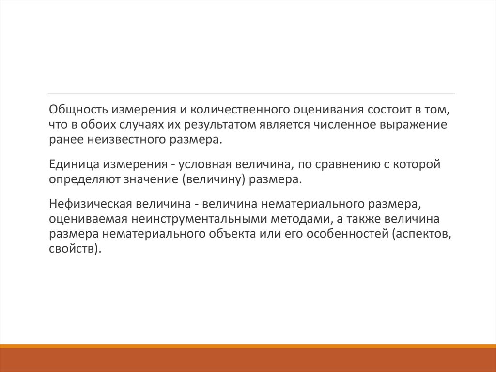 Общность измерения и количественного оценивания состоит в том,что в обоих случаях их результатом является численное выражение