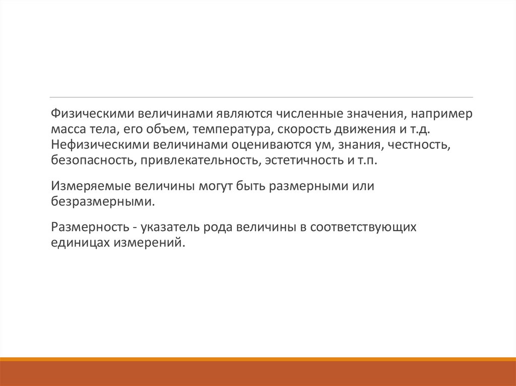 Размеры и, следовательно, их величины бывают физическими и