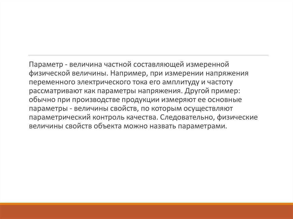 Параметр - величина частной составляющей измереннойфизической величины. Например, при измерении напряжения