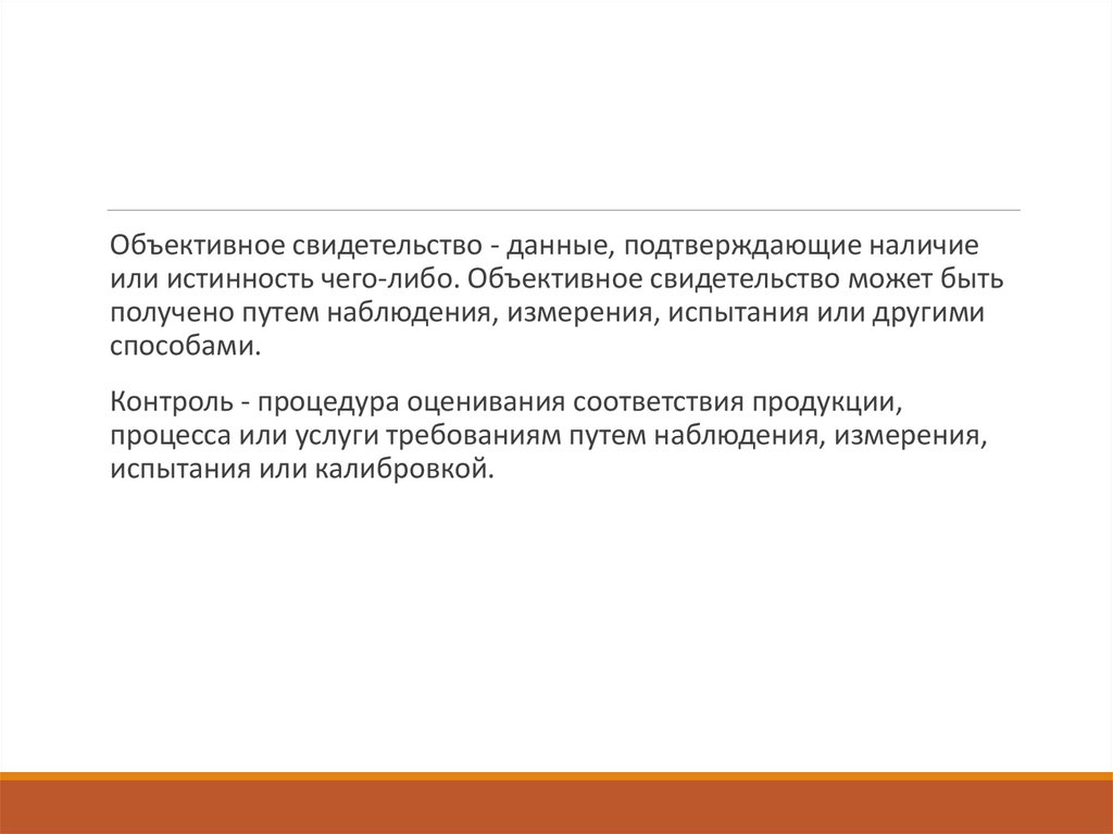 Объективное свидетельство - данные, подтверждающие наличиеили истинность чего-либо. Объективное свидетельство может быть