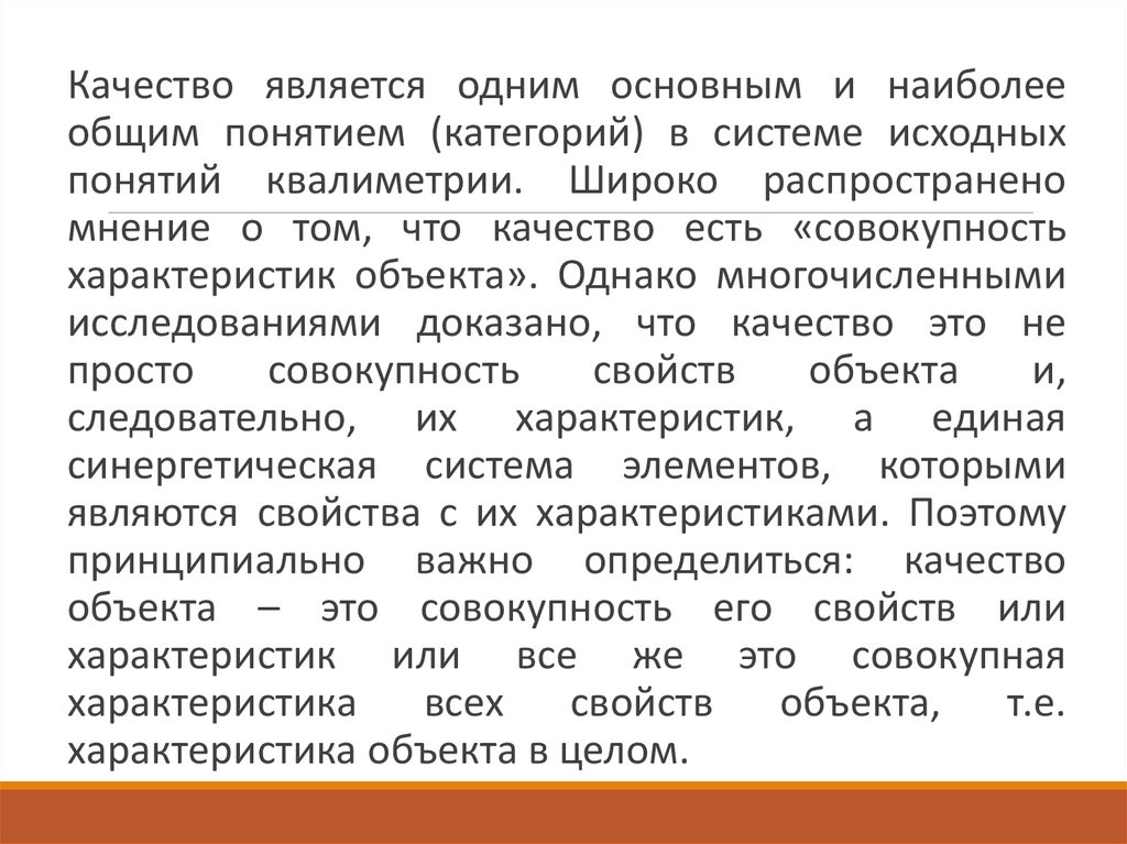 Качество является одним основным и наиболееобщим понятием (категорий) в системе исходных
