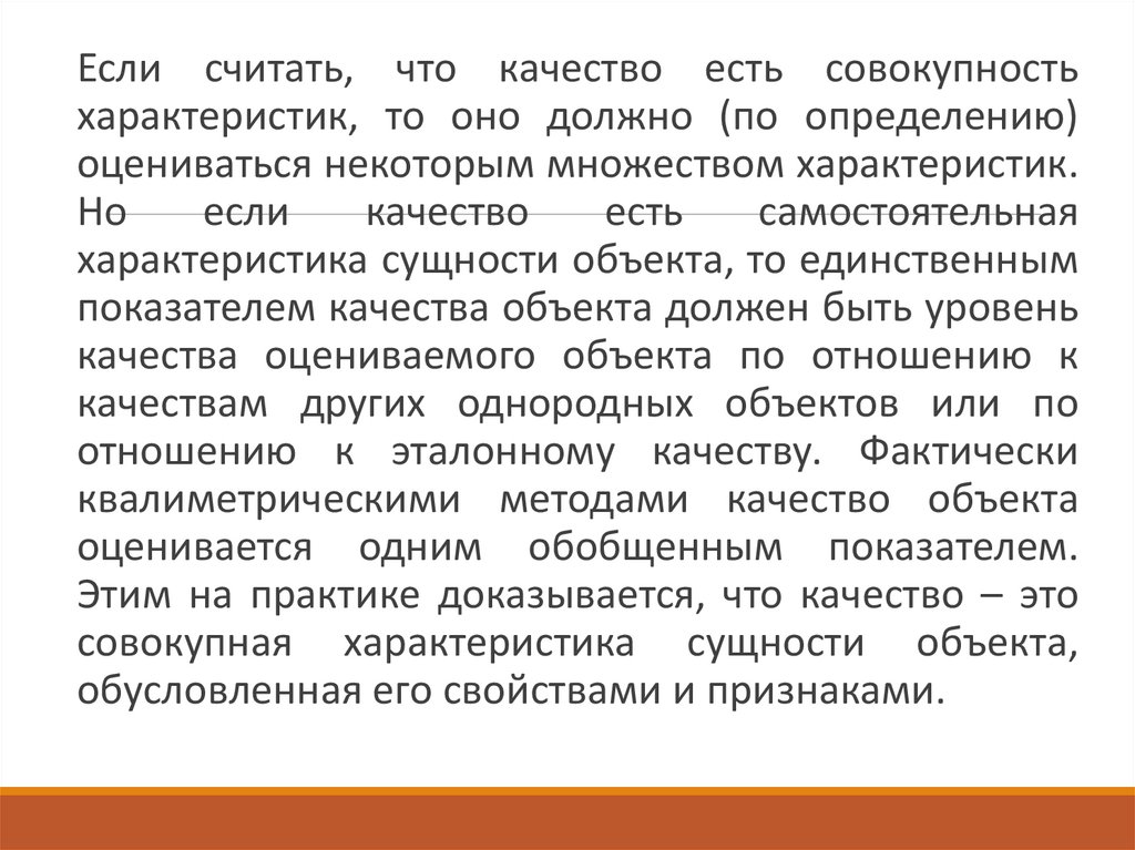 Если считать, что качество есть совокупностьхарактеристик, то оно должно (по определению)