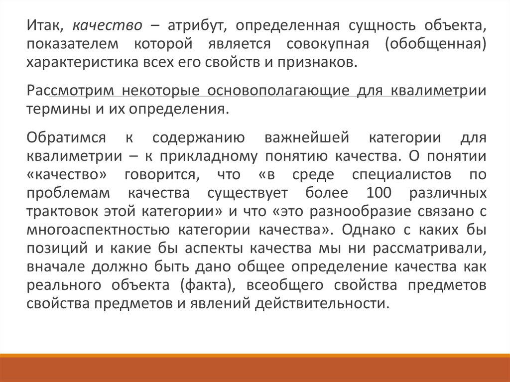 Качество, в широком смысле этого понятия, - это объективная и наиболее