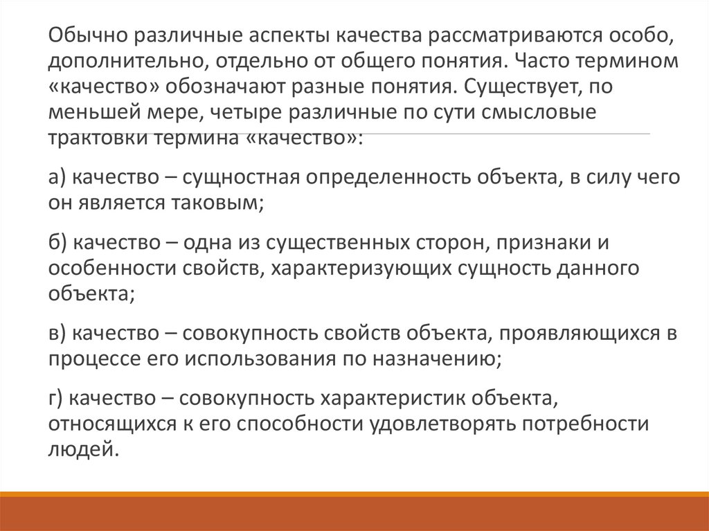 Такое представление о качестве, в отличие филисофского понятия,