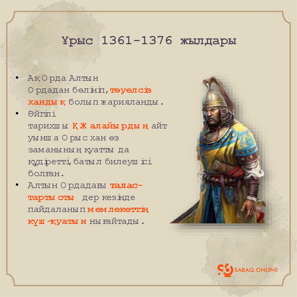 • 1376 ж ы лы ш айқаста Ұры с хан қаза табады