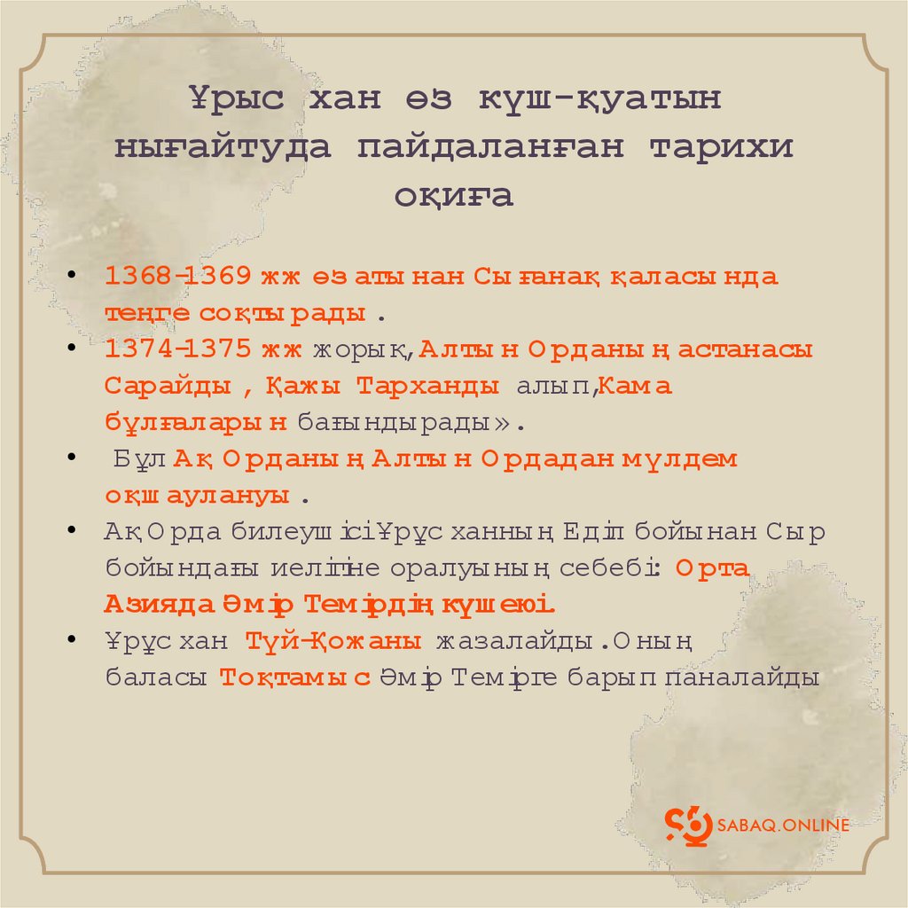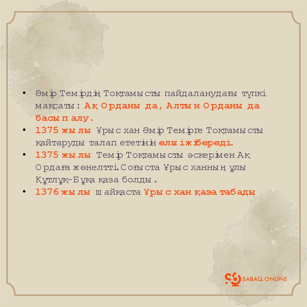 • 1375 ж ы лы Ұры с хан Әмір Темірге Тоқтамы сты