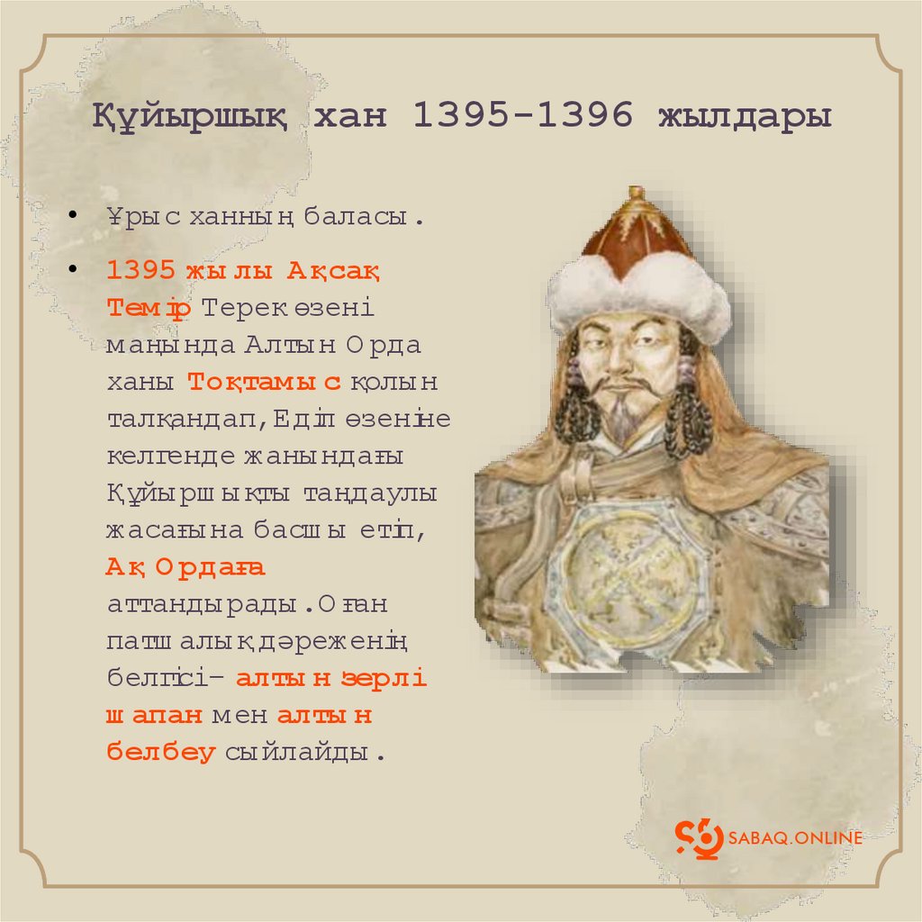Құйыршық хан 1395-1396 жылдары• Ұры с ханны ң баласы .