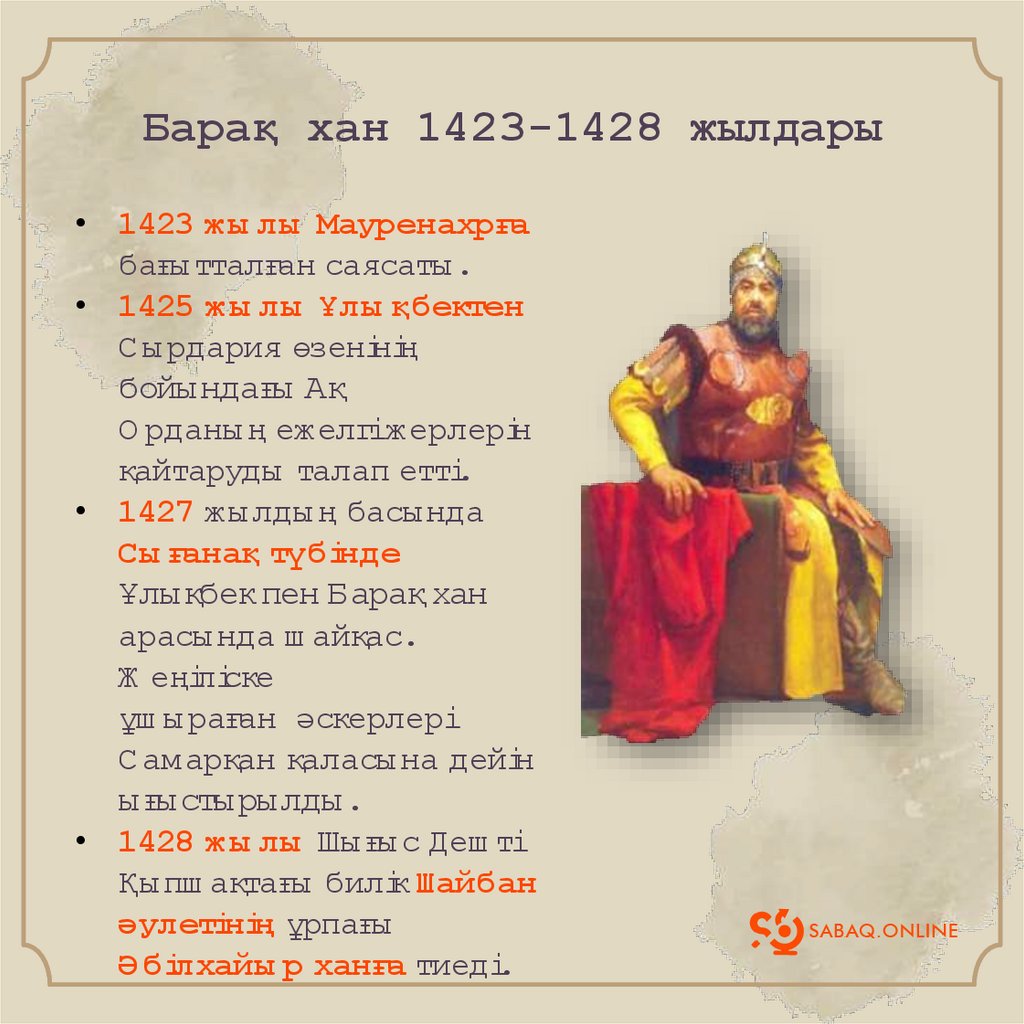 Барақ хан 1423-1428 жылдары• 1423 ж ы лы Мауренахрға