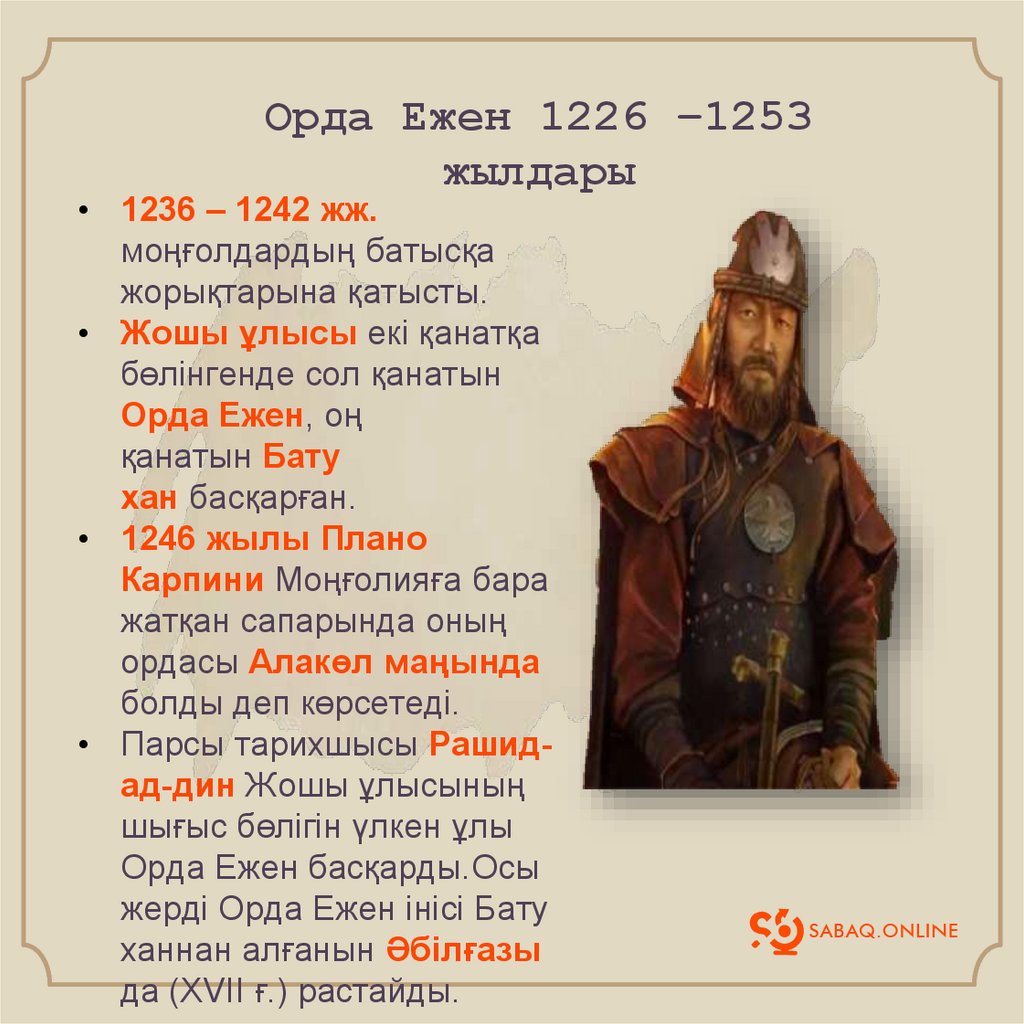 Орданы біріктіруші ұлыс ретінде көрінді.