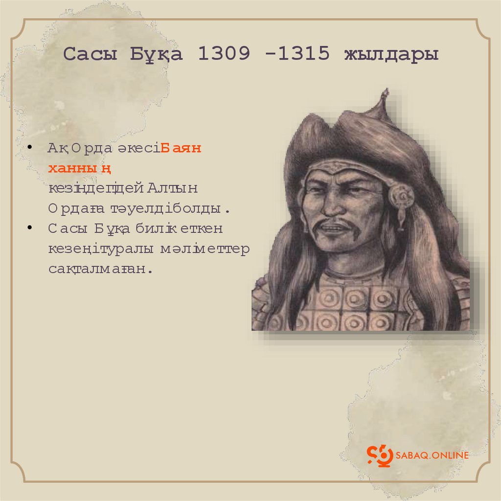 Сасы Бұқа 1309 -1315 жылдары• Ақ О рда әкесіБ аян